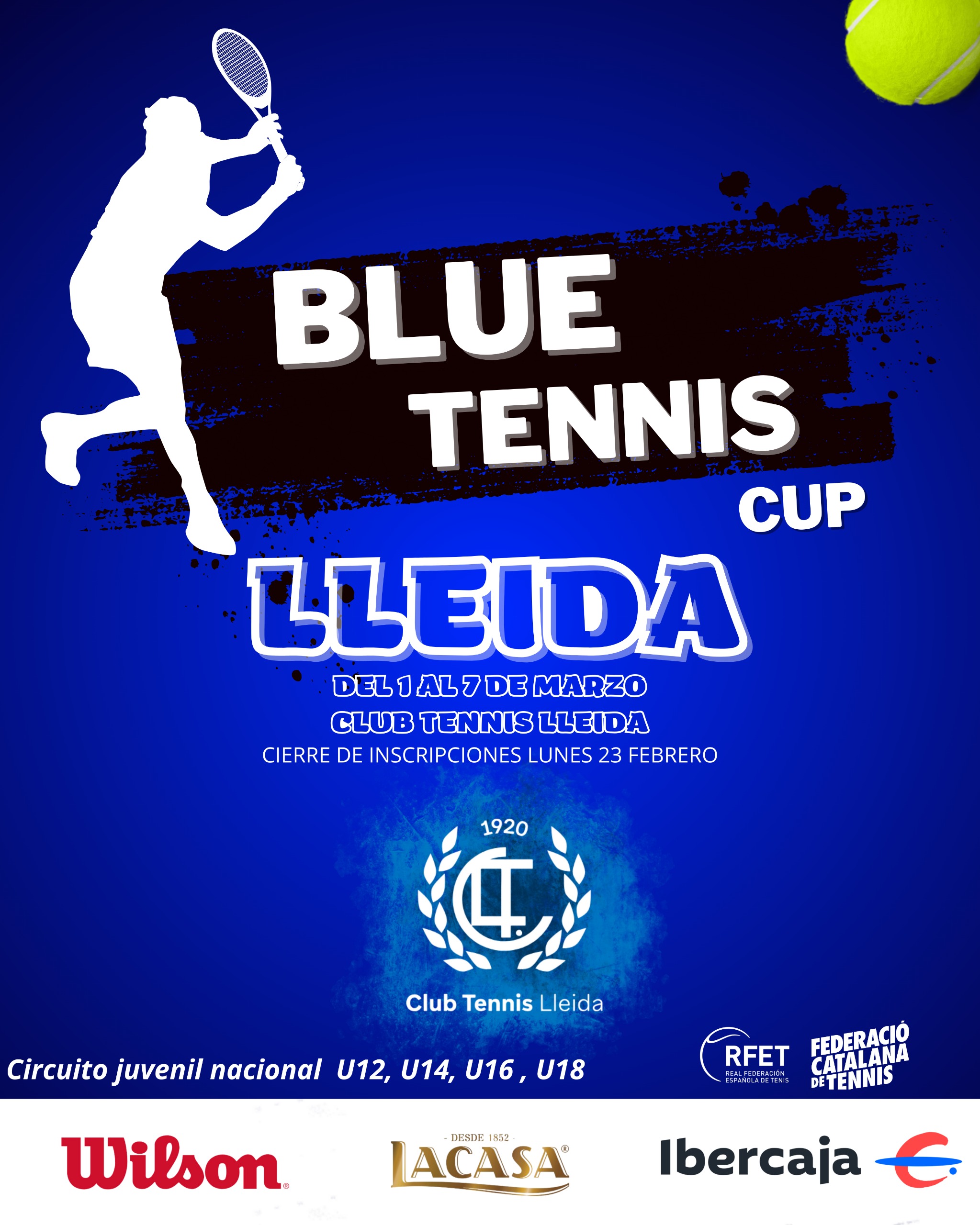 El Circuit Nacional Blue Tennis Cup visitarà per primer cop les pistes del CT Lleida, en el que serà a més el primer torneig de l’any al club. Ho farà amb 210 inscrits, 50 dels quals pertanyen a clubs de Lleida, que competiran des d’aquest diumenge, 1 de març, fins al dissabte següent, 7 de març.