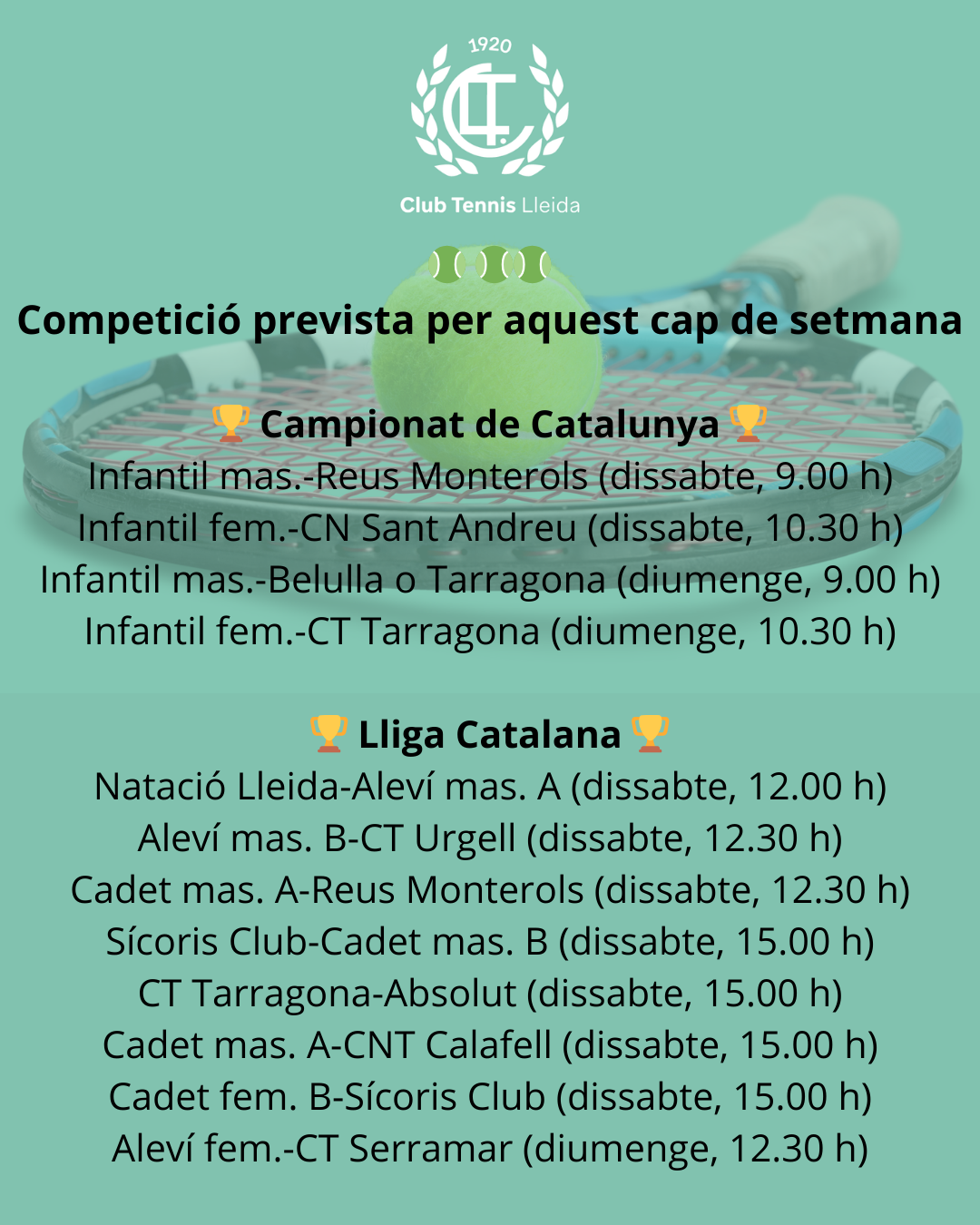 Quadre de competició dels equips de tennis del CT Lleida a la jornada del cap de setmana