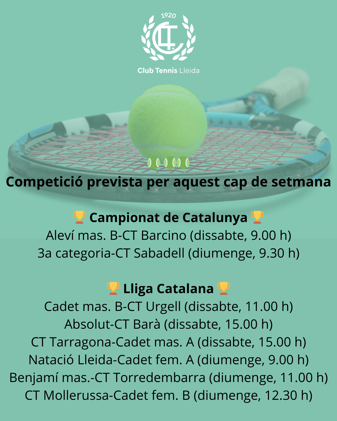 Quadre de competició dels equips de tennis del CT Lleida a la jornada del cap de setmana