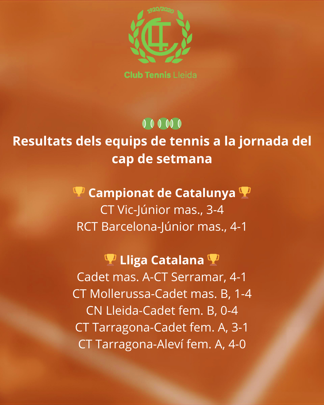 Resultats dels equips de tennis del CT Lleida a la jornada del cap de setmana