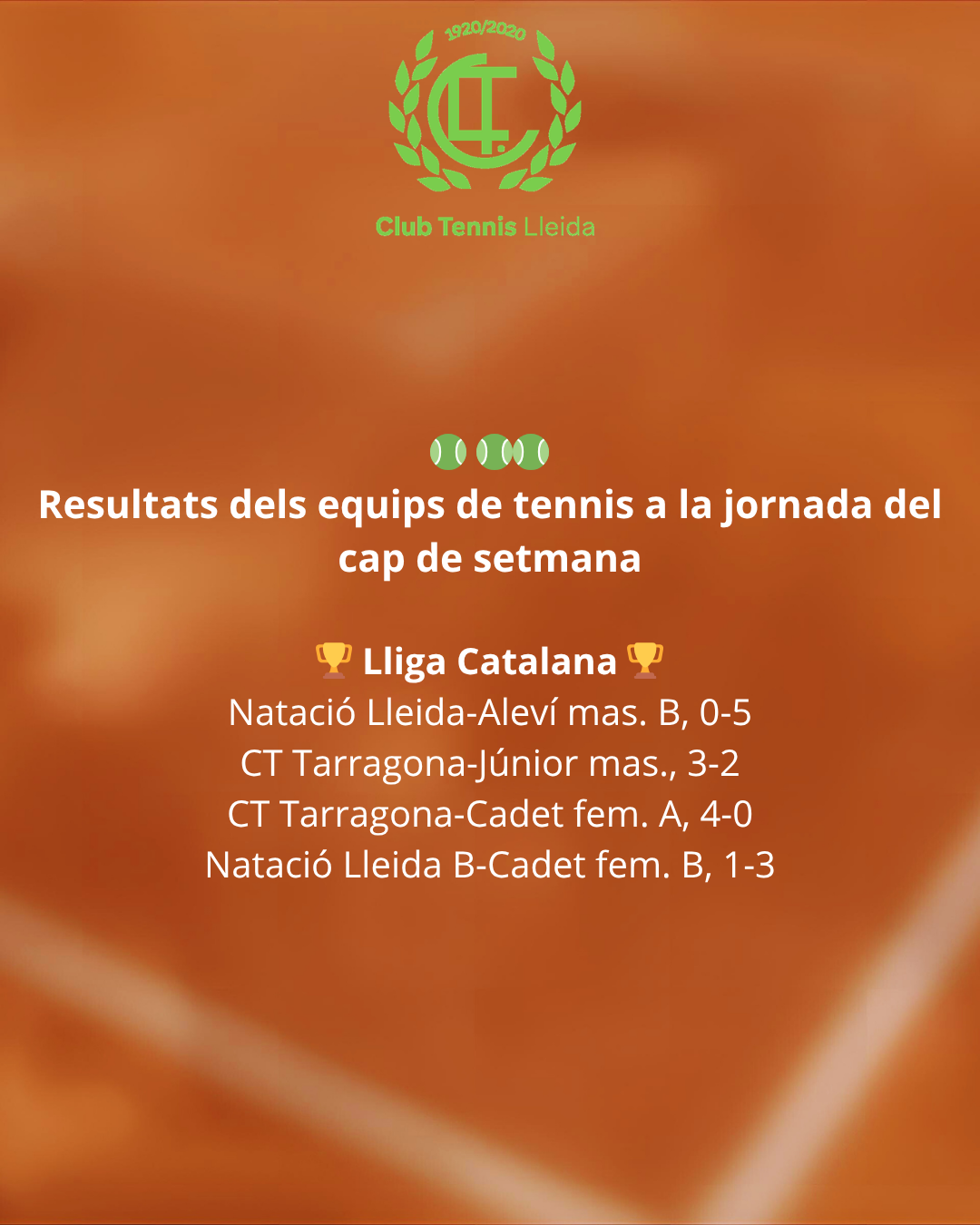Resultats dels equips de tennis del CT Lleida a la jornada del cap de setmana