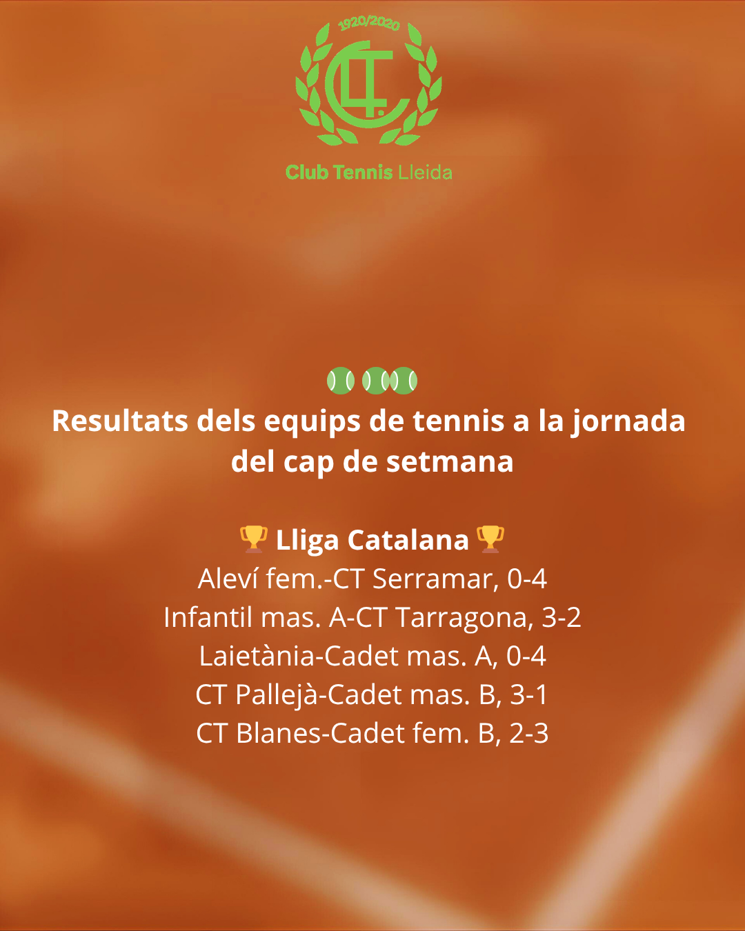 Resultats dels equips de tennis del CT Lleida a la jornada del cap de setmana